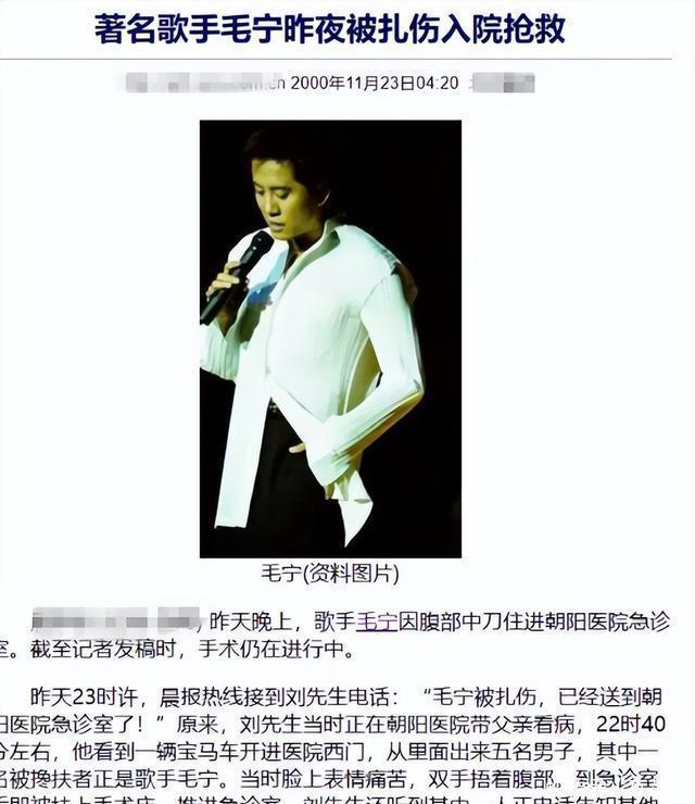 遇刺 2000日,这一天让毛宁永生难忘。 他从饭店走出来,准备驾车离开去录新专辑。 没想到半路突然冲出一个陌生人。