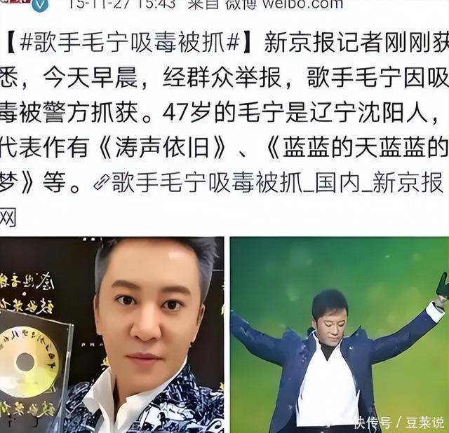 被捕入狱 2015月,有群众举报,毛某等在朝阳某小区内吸毒。 待警方赶过去时,把正在吸毒的毛宁抓了个现行。 他自己也承认吸毒的事实。